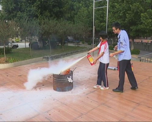 疏散演練結束后,消防人員為師生進行了消防安全常識教育,重點講解了中小學生防火、滅火、逃生常識等,詳細介紹了發生火災后如何保護自己、如何識別消防安全標志,如何正確使用手提式干粉滅火器等。消防人員現場示范并邀請了部分師生親身試驗如何正確使用滅火器。