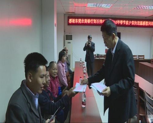 12月31日上午,東莞農村商業銀行董事長何沛良一行來到對口幫扶的石排村開展節前慰問活動,提前為對口幫扶低保戶送去節日祝福和慰問。