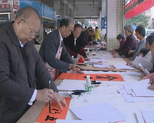 據了解,春聯是春節的一道亮麗的風景線,它不僅給新春帶來祥和溫馨喜慶歡樂的節日氛圍,同時,它也是咱們老百姓對幸福的一種期盼。望牛墩鎮文廣中心每年都會組織書法協會會員書寫春聯免費贈送給廣大市民,以書法傳承年俗文化。(記者:廖洪標)