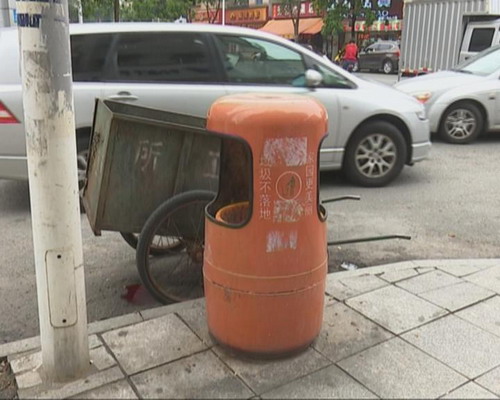 設置在城市街道上的垃圾桶原本是為廣大市民提供方便的公用設施,按理說應該受到好好保護。但記者走訪發現,鎮中心區部分街道上安裝的垃圾桶受到不同程度的損壞,有的甚至不翼而飛。