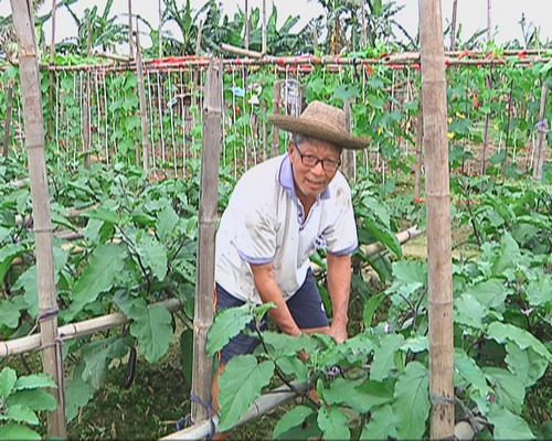 農戶:今日立夏,立夏季節,氣溫高、天氣熱,氣溫高,蟲子好多,蟲子繁殖季節,(蟲子多了之后)就要打農藥,用農藥噴它。