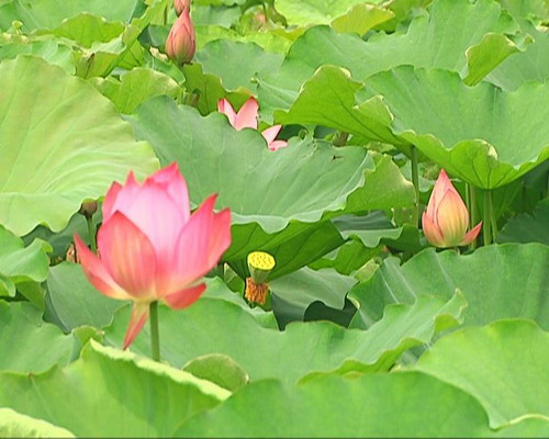 記者在鎮(zhèn)水鄉(xiāng)公園看到,荷花池里的荷花競(jìng)相綻放,嬌艷可人,荷香撲鼻,美不勝收,荷葉特別翠綠,荷塘被綠油油的荷葉覆蓋著,一朵朵的荷花點(diǎn)綴其間,這些荷花有的已經(jīng)綻放,有的正在含苞待放,更多的是剛長(zhǎng)出花蕾,迎風(fēng)招展,風(fēng)姿綽約。