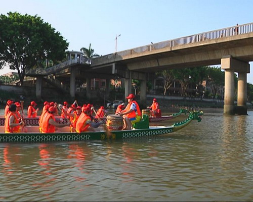 當天下午,寮夏河邊熱鬧非凡。東莞理工學院的老師們穿著橙紅救生衣,在工作人員的安排下,有序安全地上船,與上合村120多龍舟好手組成兩條傳統龍和兩條鳳艇,向高手學習劃龍舟技巧。在活動中,這群新手在領隊的指導下認真做好每一個動作,鼓聲、口號聲、吶喊聲不絕于耳。期間還與正在訓練的其他村的龍舟隊來一場即興的“賽龍舟”,讓老師們過足一把“扒龍舟”癮。在河岸觀看的村民都在為這些龍舟健兒加油鼓勁。