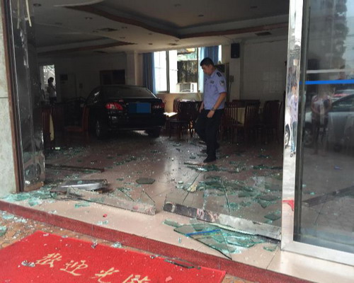 6月17日中午11點左右,在我鎮聚福路,一輛黑色小轎車失控沖進了一臨街酒樓內,店鋪正門玻璃碎一地,場面非常嚇人!事故現場,交警部門正在處理相關情況。據了解,駕車的中年男司機為了避讓另一部車,錯把油門當剎車,因而造成車輛失控,只撞入酒樓的事故。慶幸的是,當時并不是飯點時間,轎車失控沖進酒樓時,飯店內并沒有顧客,今次事故中沒有人員傷亡。