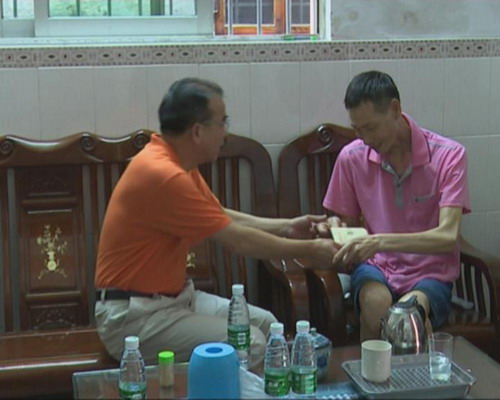 在李松波家中,鎮委書記、鎮人大主席簡任昌、副鎮長林鵬飛以及赤滘村兩委干部與李松波夫婦進行了親切座談,詳細了解了李松波身體現狀、家庭情況等,得知李松波患鼻咽癌多年,簡任昌鼓勵他們夫婦要努力克服當前的困難,正確對待疾病,堅強、堅持治療,樂觀面對,積極生活,樹立對生活的信心,教育好子女。并表示,如遇到什么困難,黨和政府都會想辦法幫忙。最后,簡任昌一行還向李松波送上慰問金。