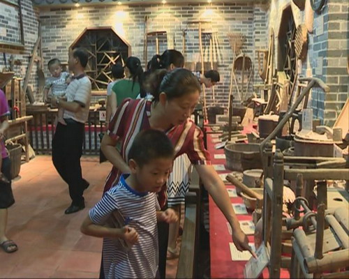 記者在現場看到,不少游客或一家大小,或三五成群來到水鄉記憶館,參觀一件件散發著“古董味”的農家具。這里陳列的龍舟、犁、風柜、耙等水鄉農具;理發店的剪刀、照相館的相機,鐘、燈等日用品;桌、椅等家具;鍋、碗等廚房用品以及花轎、樂器等民俗用品等,特別是大水車、石舂、麒麟盾等都具有一定歷史價值以及與市民生活息息相關的農家具,通過實物復原和模擬場景的方式,為游客拉開一幕幕時代久遠的特色文化和質樸純然的民俗,游客在水鄉記憶館真實場景中,體驗文化、回味兒時的鄉村記憶。許多市民表示,看到這些農家具感覺很親切、熟悉之余,讓他們一下子“回到”了兒時那個年代。