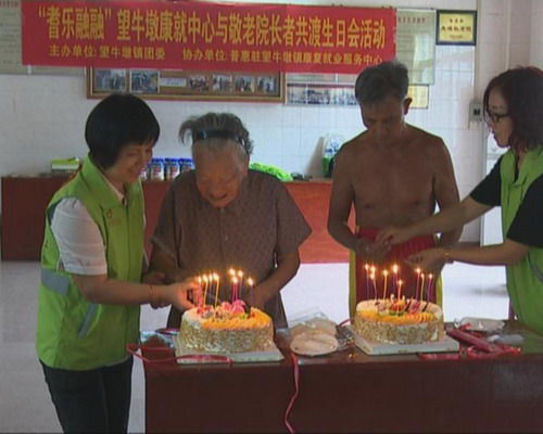 9月28日下午,鎮敬老院內熱鬧非凡,由鎮團委和社工們攜手舉辦的敬老院長者生日會在鎮敬老院熱鬧上演。
