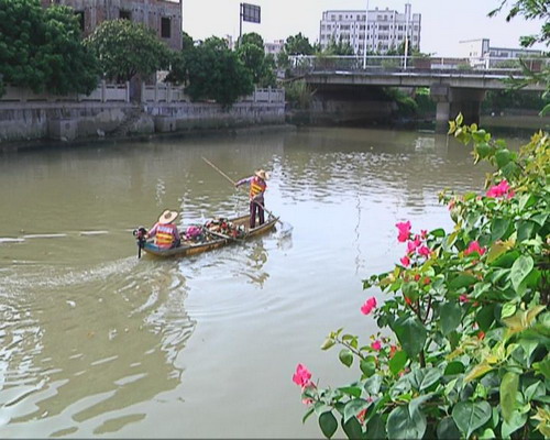 11月1日,記者在我鎮望溪河上看到,清潔環衛作業人員正在清理河涌水面上漂浮的垃圾、水浮蓮等,小小的清潔船上裝了不少剛清理的垃圾。據介紹,像這樣的河涌清潔工作每天上、下午需各來回清理一次,一天下來共清理河涌四次。