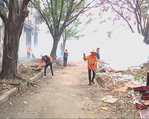 環衛所組長 盧沃江:今早我們打蚊、掃地,是一個牽頭,希望今后大家做好配合,接下來,我們要整治這個衛生死角地方環境,死角地方就是小巷、樹頭、花帶地方的垃圾要清理。