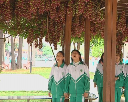 記者在望牛墩中學校園看到,一串串紫紅色的禾雀花吊掛在長亭,有如禾雀飛舞,惹人喜愛。學校方面介紹,禾雀花為國家二類保護植物,因其形肖似禾雀而得名。學校的禾雀花是2009年移栽過來的,前幾天逐漸綻放,但禾雀花的開花期只會持續到10多天,現在種有禾雀花的長亭也成為了師生們學習、休息的好地方。每到禾雀盛開的季節,都會有不少學生前往觀賞。