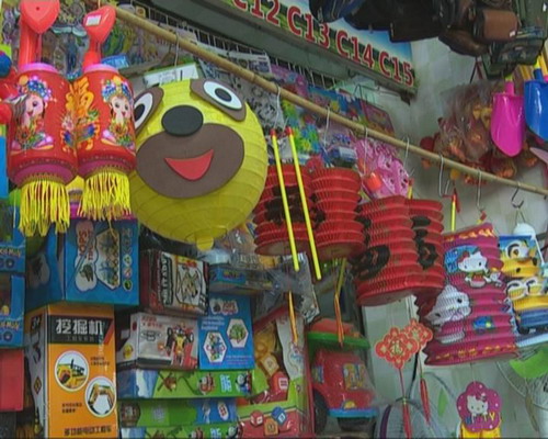 (檔主):中秋節個個都要點燈籠,今年又是雞年,所以(好賣),今年望牛墩很多人買這種燈籠。