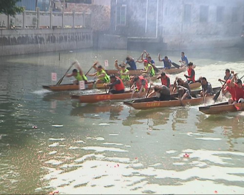 參賽隊員之一:開心啊,經過這么多天的訓練,終于取得這樣的成績,大家隊員都好高興的,龍舟這種團體活動,其實是有群眾性的,我覺得大家應該多點支持這種活動,我們都是從小都熱愛傳統龍舟的,所以我們都扒到現在這個年紀,都繼續好有興趣扒龍船。