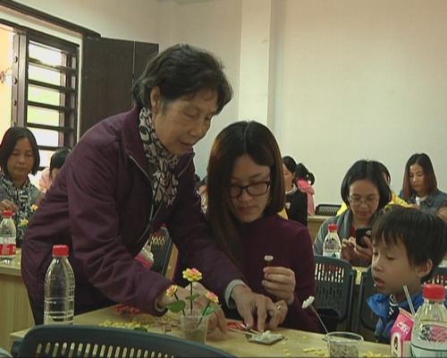 記者在現場看到,不僅有“巧女”積極參與,還有眾多“巧男”、小朋友的身影,他們聚精會神地聽陳杰芳老師講解,并跟著老師的步驟去自己動手制作。在老師的指導下,每個人都做出了自己的手工花,露出了燦爛的笑容。