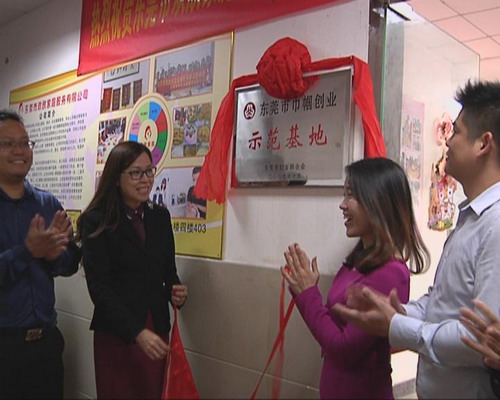 隨后,鎮委委員、鎮婦聯主席賴飛飛與望牛墩鎮“東莞市巾幗創業示范基地”負責人、歡欣家庭服務有限公司總經理黎曉敏等人員共同為東莞市巾幗創業示范基地揭牌,并合影留念,現場人員還實地參觀東莞市巾幗創業示范基地——東莞市歡欣家庭服務公司。