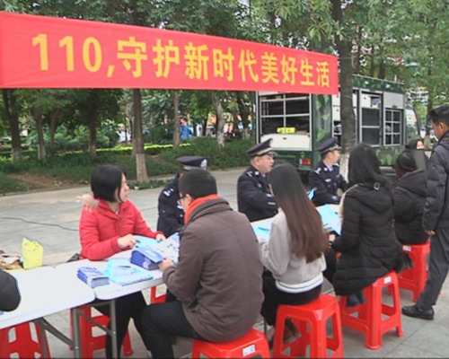 110指揮中心民警:盧德建:這一次宣傳活動,主題是110守護新時代美好生活,主要是宣傳我們110接警的七大類內容,向市民宣傳怎么利用好110這個有限資源來為市民提供我們公安的一個服務。(記者:張晶 廖洪標)