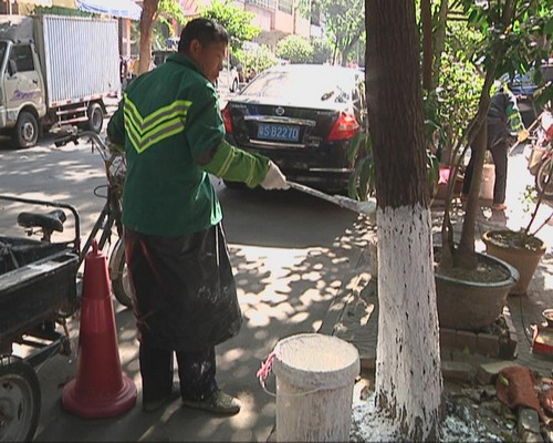 這幾天氣溫驟降,為確保樹木安全過冬,近日,在望牛墩鎮(zhèn)主干道隨處都可見到園林綠化工人正拿著刷子,手提塑料桶,走上街頭,為綠化樹木穿上“防寒衣”。