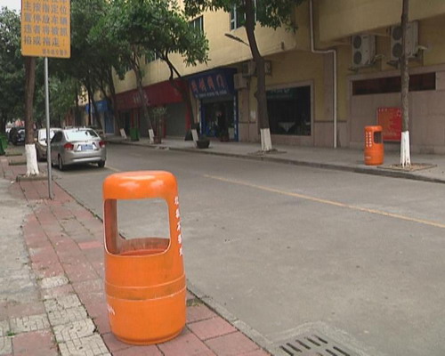 新增的30多個垃圾桶分布在龍泉路和永盛路。記者在龍泉路看到,每隔幾十米的距離就有一個垃圾桶,新垃圾桶為橙色,顏色分外顯眼,配上升級改造的龍泉路,給人一種耳目一新的感覺。