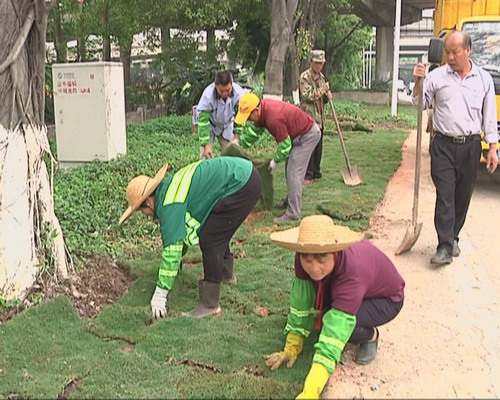 日前,記者在廣深高速廣州入口附近看到,施工隊(duì)伍正在回填種植土,種植土回填平整后,工人將一片片草坪仔細(xì)地填鋪在輔道邊的綠化帶里,原先雜亂無章的道路兩側(cè),漸漸變得亮麗起來。