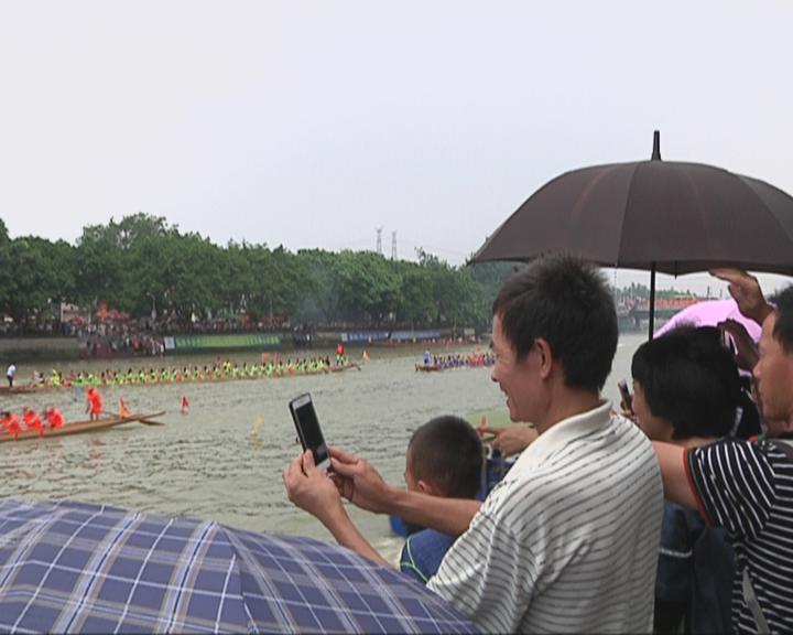 記者劉怡:我現(xiàn)在所在的位置是寮廈河岸,只見現(xiàn)場彩旗飄揚(yáng)、鑼鼓喧天、熱鬧非凡,雖然天氣炎熱,但群眾看龍舟競渡的熱情絲毫不減,只見河的兩岸被觀眾圍得水泄不通,現(xiàn)場的歡呼聲、喝彩聲不斷,場面非常壯觀。