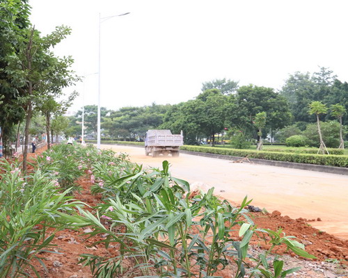 記者今日在廣深高速望牛墩出入口附近綠化提升工程的施工現(xiàn)場看到,綠化工人正在道路兩邊進(jìn)行植樹栽花等,進(jìn)一步綠化、美化環(huán)境。據(jù)綠化人員介紹,他們采用花、木套種,此次栽植有粉花夾竹桃、宮粉紫荊、黃花風(fēng)鈴木等植物。