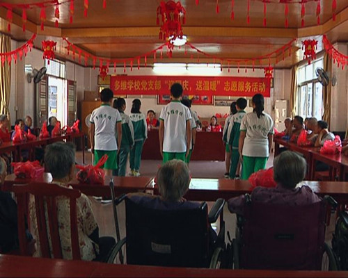 老師:更多的是為了傳承中華民族傳統(tǒng)美德,然后也是為了活躍我們黨員組織生活,為了發(fā)揮我們黨員一個模范作用,全心全意為人民服務(wù),我覺得以后多開展這些活動,給老人帶來歡樂,溫暖(他們)的同時,也是我們一個使命感。