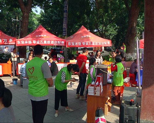記者在活動現場看到,志愿者們一邊向市民宣傳志愿服務項目、動員市民群眾積極投身于志愿服務事業;一邊開展青年創業集市活動。創業青年擺攤設點正熱情地向顧客推銷自己的商品?,F場銷售的商品有日用品、衣服、水鄉美食等,吸引了不少市民前來消費。