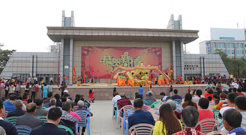 一大早,鎮文化廣場鑼鼓齊鳴,熱鬧非凡。由10只醒獅、2條舞龍組成的龍獅表演隊集結完畢后,從鎮文化廣場出發,途經商業街、金牛路、綠榕路等主要路段進行巡游表演,巡游隊伍所到之處,鑼鼓喧天,彩旗飄揚。人們伴隨著歡快的鑼鼓聲,簇擁著舞動的龍獅,邊走邊舞,盡情狂歡,共同慶祝新春佳節。