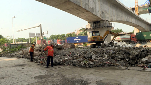 整治中,鎮城市管理和綜合執法分局組織15名環衛工人、2臺挖掘機、2輛農用車對東莞西站、望洪路城軌沿線的建筑垃圾、工業垃圾、亂堆放等進行平整及清理,對東莞西站周邊進行了大清掃及衛生死角清理。