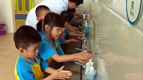 醫生提醒家長牢記抵御手足口病的“15字口訣”:勤洗手、吃熟食、喝開水、勤通風、曬太陽。家長們還要注意環境衛生以及寶寶的個人衛生。盡量避免帶寶寶到人群密集的公共場所,如電影院、公園、商場等,以避免交叉感染。家長們如果發現寶寶出現發熱、手、足、口出現皰疹時要及時去醫院問診。如果寶寶高燒,皮膚發冷精神差,手腳發抖、抽搐要第一時間把寶寶送至醫院進行治療。(記者:林宇婷 李國健)