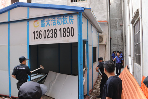 該亂搭建活動板房位于望牛墩鎮(zhèn)下漕村,面積約30平方米,當事人未經(jīng)任何審批報建進行搭建,屬亂搭建行為,且存在嚴重安全隱患。執(zhí)法人員現(xiàn)場對當事人進行教育勸告,責(zé)令其自行拆除,但當事人拒不整改,鎮(zhèn)“兩違”辦當即迅速出擊,組織相關(guān)部門對亂搭建活動板房實施依法拆除。