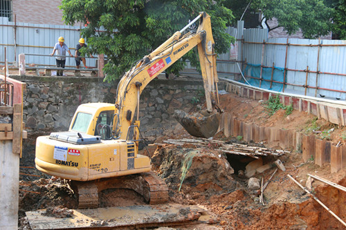 記者在施工現場看到,大型挖掘機正在加緊施工。為確保工程盡快完工,國慶期間,施工隊在保證工程質量的前提下晝夜連續施工,進行最后的建設沖刺。