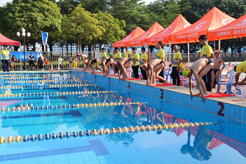 今年全市小學生游泳U系列比賽共設五站賽事,望牛墩鎮為今年賽程的第四站。賽事以學校為單位組隊參賽,共設94個比賽小項,面向東莞市內各小學一至六年級的學生。