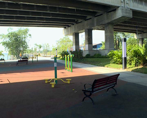 目前,沿線已種植綠化植物,欄桿和景觀燈已安裝,沿線休閑廣場已安裝健身器材等。