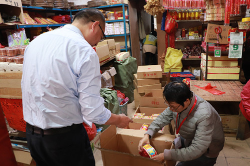 檢查組一行前往到望牛墩肉菜市場和河西市場的商鋪進行檢查,重點檢查商鋪是否存在非法經營、儲存、運輸煙花爆竹等行為,并向商鋪負責人宣傳違法違規銷售、儲存煙花爆竹的危害,進一步增強營業者的法制意識和安全責任意識。