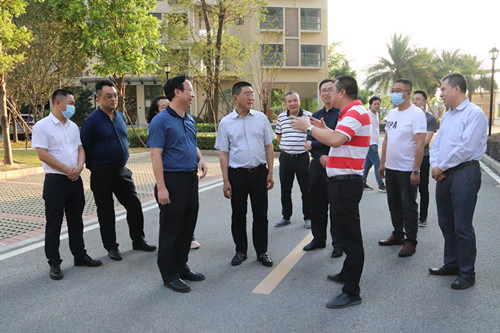 九龍縣委書記趙景強等九龍縣黨政代表團一行,在鎮委副書記、鎮長莫偉鳴等鎮領導的陪同下,先后實地參觀了水鄉功能區核心單元(東莞西站望牛墩單元)、朱平沙農民公寓等地,了解望牛墩鎮土地統籌、鄉村振興發展戰略實施等情況。