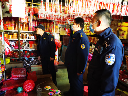 鎮(zhèn)應急管理分局、公安分局、交通分局、市場監(jiān)管分局、城管分局等部門人員組成的聯(lián)合檢查組,先后來到望牛墩肉菜市場、河西市場等地的商鋪、雜貨店,對容易出現(xiàn)非法售賣煙花爆竹的場所進行地毯式排查,重點檢查經(jīng)營者是否存在違法存儲、銷售煙花爆竹等行為。檢查中暫未發(fā)現(xiàn)有非法經(jīng)營、儲存煙花爆竹等行為。