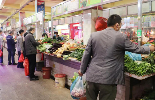 望牛墩肉菜市場場長 陳松林:防疫方面,整個市場是封閉式(管理),只留三個出口,每個出入口有專人測溫,還有電子測溫都在內,基本上都是確保市場內的人員必須戴口罩,沒口罩都不讓他們進入市場,我們市場還每晚進行消毒,清洗消毒,并且匯報給我們鎮的市場監管分局,每晚每日都有(匯報)(記者:黃新艷 魏偉俊)