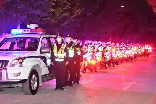 晚上7點30分,伴隨著警笛聲,由鐵騎、特警車輛等組成的武裝巡游隊伍浩浩蕩蕩進入望牛墩轄區。巡游隊伍警容嚴整、隊伍威嚴,展示了公安隊伍良好的警容警威,沿途引來群眾的駐足觀看,極大地震懾了違法犯罪行為,向全鎮人民群眾表明了公安機關打擊違法犯罪,維護社會和諧穩定的決心和信心。