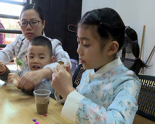省乞巧文化傳承人陳杰芳老師:今天剛剛好是春節(jié),因?yàn)榇汗?jié)是民間很隆重的一個(gè)傳統(tǒng)節(jié)日,今天和大家,以春天為主題,襯托七夕元素進(jìn)去,大家一起做一盆春色滿(mǎn)園的花,每個(gè)小朋友制作的花都有一個(gè)春字,就表示春天就生機(jī)勃勃。