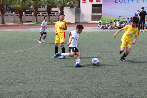 在冠亞軍爭奪戰中,身穿白色衣服的中心小學和身穿黃色衣服的新聯小學兩隊展開角逐。賽場上,小將們穩扎穩打,攻防有序,配合默契,個個激情澎湃、斗志昂揚、奮勇拼搏、活力四射,引得現場不時爆發熱烈的歡呼聲。