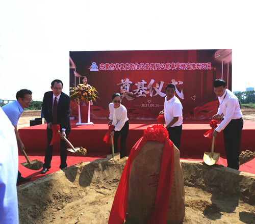 副鎮長黃文進,以及東莞市卓藍自動化設備有限公司負責人、企業員工代表共同揮鍬奠基,標志該項目正式動工興建。