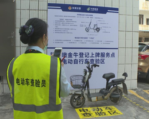 鎮郵政分局金牛登記上牌服務點查驗員:市民需要先在東莞交警的公眾號進行預約,等待后臺審批,通過后由郵政的工作人員提前聯系上牌的市民,約定具體時間,需要攜帶的相關證件資料,攜帶資料有居民身份證,購車發票,電動車的合格證。(記者:梁婷婷 廖洪標)