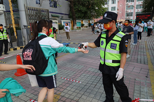 各校教師分批分點值守,各司其職,做好指引,保障學生有序、安全返校。與此同時,望牛墩鎮(zhèn)公安、交警也派出專員在轄區(qū)各校門口、周邊道路等維持秩序和交通管理,為各校學生返校復學保駕護航。