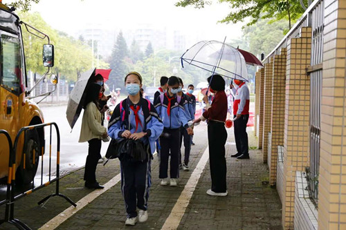 鎮實驗小學副校長 譚潤芳:今天是我們實驗小學四五六年級同學回來(校)了,之前我們做了很多準備工作,第一個首先從心情上調節,我們寫了一首原創復學之歌,給全校師生來學唱,讓她們調節好心情,高興地回到學校;第二個是我們把校園防疫準備做好,主要是消殺,然后昨天下午進行了一次演練;第三個是今天是第一天孩子回校,我們學校行政部門校長、級長、課組長,她們7點15分已經在學校里面集合了,分批次、分開人員在前門、后門等待孩子們回來,今天秩序非常良好,我們都感覺到,這樣分批次非常好的,有序的,保障了我們學生安全平安回到學校里面。(記者:張晶  廖洪標)
