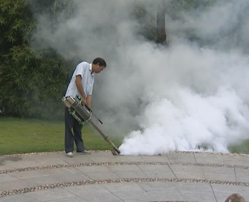 消殺公司:一般都是一個月,望牛墩殺四次蚊,每個星期殺一次,進行滅蚊的地方是政府、學校,機關單位,還有下水道,綠化區。我們現在采取交替用其他藥品,交換用。
