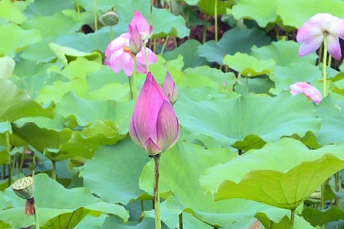 記者在望牛墩鎮水鄉公園的荷花池看到,連日來的幾場大雨,讓荷花池呈現出一詩一畫的景象……一朵朵荷花,緊緊依偎著碧綠滾圓的荷葉,在輕柔的雨絲沐浴下,如一位剛出浴的裊娜美女,更加顯得清秀可愛,正如李太白詩云“清水出芙蓉,天然去雕飾”。 偶爾一陣微風吹過,荷花、荷葉都隨風輕輕地搖曳,高低起伏,姿態萬千,還散發出淡淡的清香,美不勝收,構成了一幅天然和諧的荷塘秀色,成為水鄉公園里一道靚麗的風景線。(記者 :張晶 黃金輝)