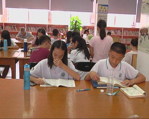 記者來到東莞圖書館望牛墩分館看到,在閱覽室里幾排座位已經(jīng)座無虛席,大部分都是中學(xué)生和小學(xué)生,他們有的在看課外書,有的在寫暑期作業(yè),此外在書架前,有的學(xué)生席地而坐進(jìn)行閱讀,采訪中幾位學(xué)生告訴記者,他們都很喜歡圖書館的氛圍,放假以來,他們都會結(jié)對天天膩在圖書館中,享受讀書帶給自己的快樂。