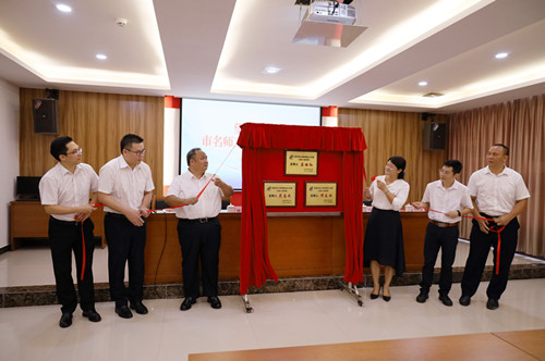 吳潤玲等鎮領導與三位“三名”工作室主持人共同揭牌。