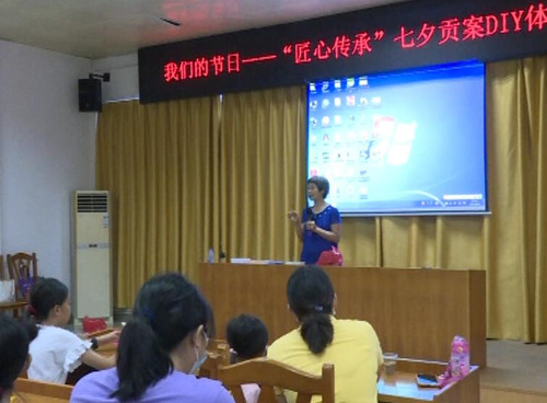 在活動(dòng)現(xiàn)場(chǎng),陳杰芳老師講解七夕貢案制作過(guò)程,詳細(xì)介紹怎樣用珠片制作梅花,大家一個(gè)步驟一個(gè)步驟地緊跟著老師的講解去制作,制作的過(guò)程中也不忘添加一些自己的創(chuàng)意。在兩位老師的指導(dǎo)下,一件件手工花工藝品制作完成?;顒?dòng)結(jié)束后,自己制作的手工藝作品還可帶走。