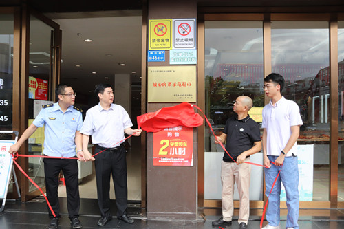 首先,莫獻來與鎮(zhèn)食藥安辦負責人一起為望牛墩鎮(zhèn)新增的“放心肉菜示范超市”揭牌。作為望牛墩鎮(zhèn)去年十件民生實事之一,萬家福購物中心成功創(chuàng)建“放心肉菜師范超市”,是望牛墩鎮(zhèn)第二個獲此殊榮的超市,為持續(xù)推進食安城創(chuàng)建工作的盡一份力,讓放心超市走進百姓生活。